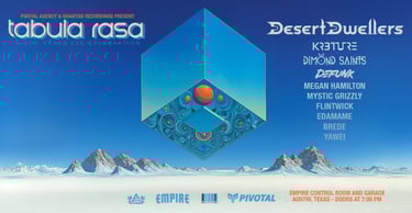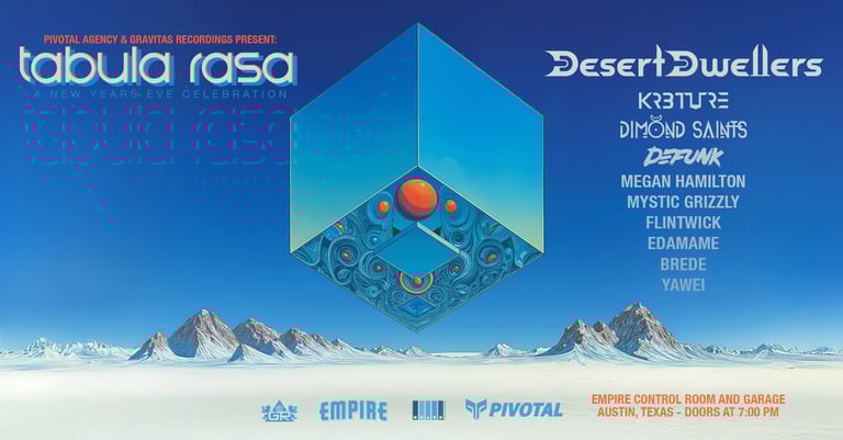 Pivotal Agency and Gravitas Recordings present Tabula Rasa: New Year’s Eve 2025, a mini-festival–style celebration at Empire Control Room & Garage on Wednesday, December 31, 2025. The event features an immersive night of music with performances by Desert Dwellers, Dimond Saints, KR3TURE, Defunk, Megan Hamilton, Mystic Grizzly, Flintwick, Edamame, and Yawei, along with vendors, performers, and more for a fully elevated NYE experience. Doors: 7:00pm 🎟️ TICKETS: $25+