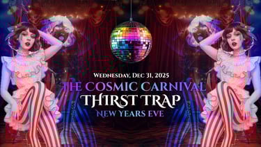 Step right up and ring in the New Year beneath the stars at the Cosmic Carnival 🌌 — a night where fire meets fantasy, and flow artists turn the dance floor into a living spectacle.